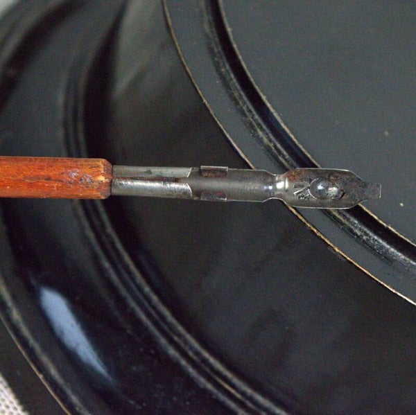 Leuke decoratieve rood/bruin houten brocante kroontjespen. Leuk om te stylen met een oude nota en bv een inktpotje.In gebruikte staat.