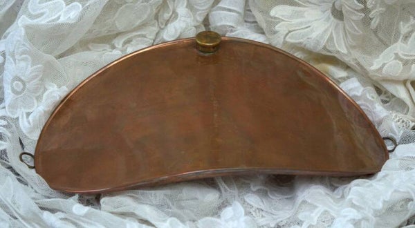 Prachtige oud rood koperen kruik. Door de vorm kon de koperen kruik op de buik worden gelegd.