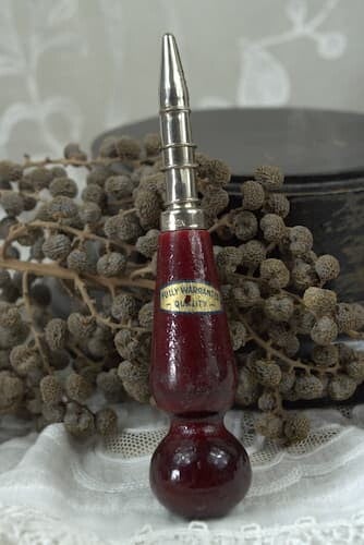 Rood bruine houten priem met bescherm hulsje. In de priem de term foreign.