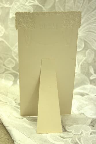 Hoe leuk dit Franse menukkaartje versierd met roze rozen en linten, die in reliëf op de kaart zijn aangebracht met daartussen de letters: Menu, in goudkleur en eveneens in reliëf.